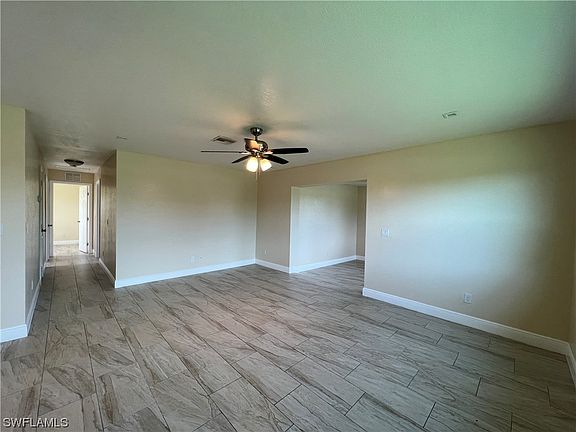 This charming home was completely gutted and remodeled in 2018, centrally located in Lehigh Acres closed to all related amenities such as church, shopping centers and restaurants, with city water and sewer. The home features 2 bedroom/2 bathroom, with family room. it has ceiling fans, ceramic tiles thru-out, and lighting fixtures. The kitchen has new appliances, wood cabinets with quartz countertops and pantry. it is freshly painted inside and out. the Home has new roof, new air conditioning, new tankless hot water heater, new impact windows, new electric panel and carport with laundry room area (new washer/Dryer). Owner is a Real Estate Licensee in Florida. Come see it. It is beautiful.