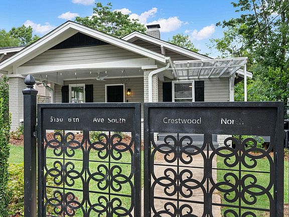 Welcome home to this Classic Bungalow in Crestwood North! Living room with gas fireplace opens into formal dining room which flows into the kitchen. Kitchen has stone countertops, stainless appliances and plenty of cabinet space. Hardwood floors throughout. Two bedrooms and full bath at the front of the home, perfect for kids or guests. Huge private primary bedroom suite at the back of the home features sitting area, walk-in closet and beautiful full bath with marble tile shower and separate vanities. Owner is a local metal artist and his custom work is featured throughout - decorative front gate with address, arbor and bench seating at the open end of the front porch. Vanity accents in the bathrooms and metal shelving in the baths/closet and decorative metal railing surrounding the open deck. Fenced backyard is shady and a nice place for kids/pets to play. Home is convenient to UAB, Downtown and local bars, breweries, restaurants and music venues!