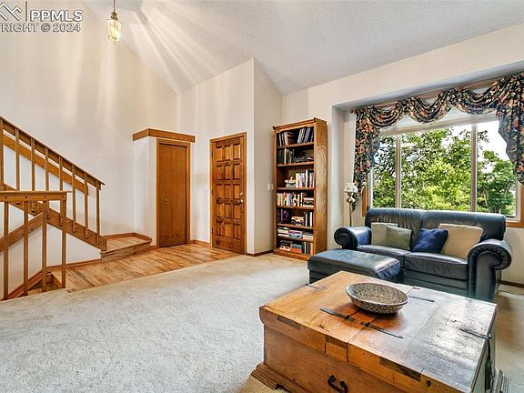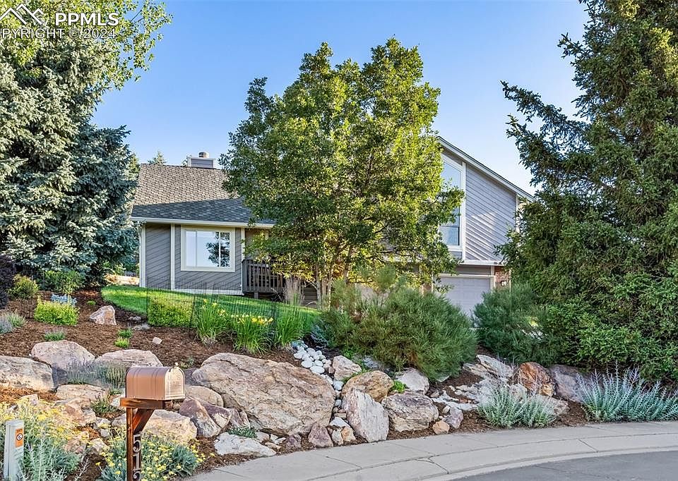 Fantastic one owner home at the end of a cul-de-sac in Mountain Shadows. The entry and living room will greet you with vaulted ceilings, great natural light and a fantastic ceiling height, wood burning fireplace. Up the stairs you will find the kitchen, walking out to the beautifully landscaped back yard, the pavers will lead you to a quiet sitting area with a propane fire pit. The large primary bedroom features great views of the mountains and Garden of the Gods, a walk-in closet, double vanity and a 3/4 bathroom. You will also find two additional bedrooms and a full bathroom on this level. Downstairs you will find a large family room with new flooring, an additional bedroom, full bathroom and laundry. Down one more level is the unfinished basement with ample room for storage or ready for you to finish for additional living space. Schedule a showing to see this wonderful home, you will not be disappointed!