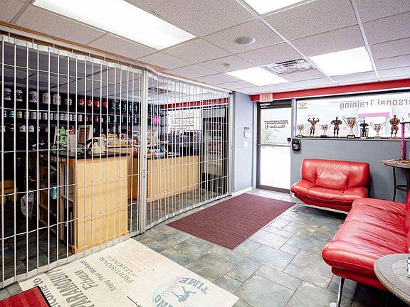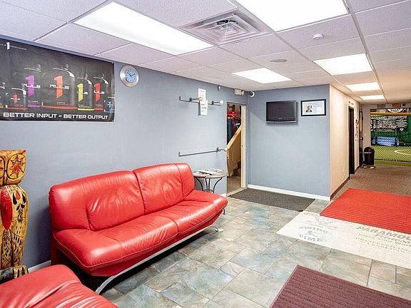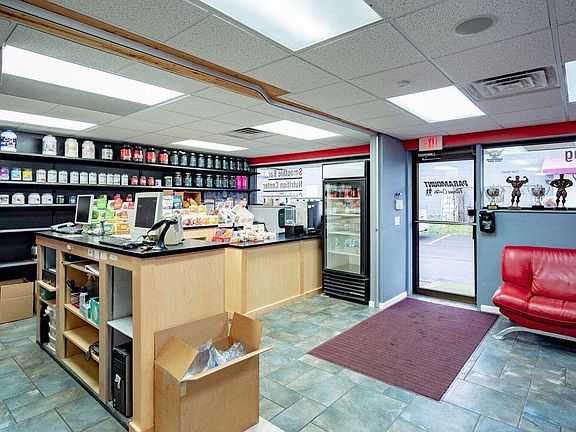 Immediate occupancy in this 9000 total sqft insulated metal frame building. Very open plan with 18'-22' ceiling height. 40+ parking spots with new asphalt drive. 3 office areas and reception area, 2 full locker rooms. 10ft x 11ft truck door. Former fitness club. Great for contractor or other multiple uses. Also available for lease $3800/month.
