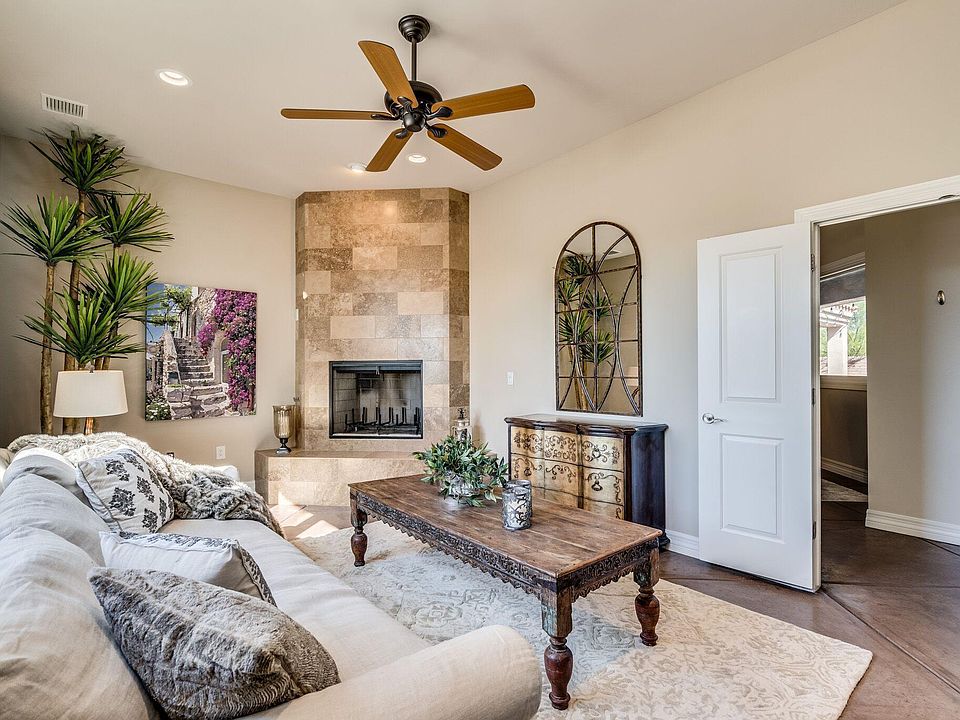 Beautiful custom home that has the space you need! gourmet kitchen, scored concrete floors, extra large master bath with His/Her vanities and closets. Guest Wing, Expansive covered patio space and Pella tinted windows/doors. Solar is owned and Seller's monthly bills are approx. $19,00/month. Newer HVAC units. Gorgeous pool with mountain views. large 3-car garage with storage.