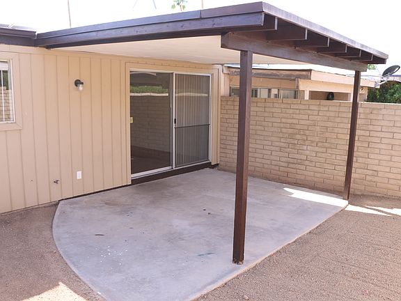 Centrally located to Arcadia, Old Town, Mill Ave, downtown, central phoenix, airport and much more. Spacious patio has plenty of room for entertaining. Beautiful community pool for lounging/relaxing. Green belt blocks away for exercise or bike riding. Private 2 car carport and guest parking across the street. Washer/dryer hookup inside unit. Stainless steel appliances. Fresh paint, roof re-seal a few weeks ago. Cabinets and granite tile countertops replaced 3 years ago in kitchen and bathrooms. Hardwood floors in living area with tile in bedrooms and bathrooms.