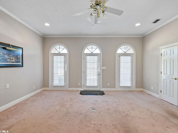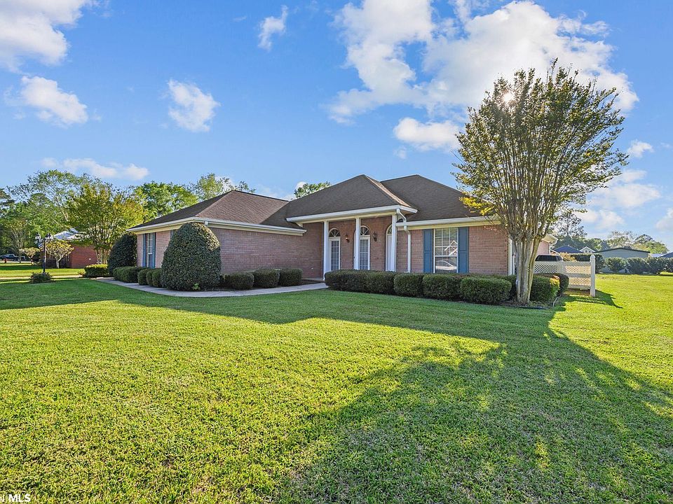 Custom Built Brick, One Owner home sits on a 1/2 acre lot in desirable subdivision in Loxley, With No HOA. The home is a split bedroom floorpan, with a dual gas fireplace between the living area and sunroom. As you walk out the sunroom, you are greeted by a beautiful backyard with surrounding shrubbery for privacy. There is a stained concrete patio, that has an electric awning to provide a peaceful place to enjoy your morning coffee or evenings to relax. This home has many upgrades including central vacuum, Generac Whole Home Generator, security system, custom whole home hurricane coverings, gutters, a Rain Bird sprinkler system on its own well, 2 car, attached garage, with exterior entry key pad and built in shelving, cabinets and counter space.