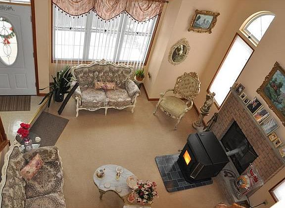 ADORABLE AND AFFORDABLE! Check out this well-maintained 3 bedroom/2.5 bath contemporary home! Additional features include living room with vaulted ceiling & fireplace (pellet stove not included), dining room, kitchen with new stainless steel appliances & breakfast nook, family room, master bedroom with vaulted ceiling, master bath with deep jetted tub, 1-car garage, paved circular drive, & landscaped yard. THIS IS A MUST-SEE! CALL TODAY!