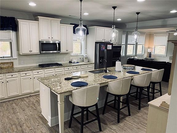 - Kitchen Features: Eat-in Kitchen, View to Family Room, Stone Counters, Kitchen Island, Pantry Walk-In, Breakfast Room, Cabinets White