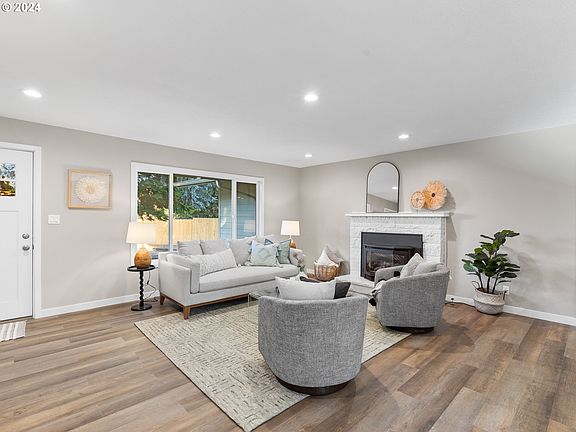 Welcome to this meticulously updated ranch located at the end of a peaceful street, offering ultimate privacy and serenity. Step inside to a beautifully designed 4-bedroom, open-concept floor plan that features a bright, light-filled living room with a cozy fireplace – the perfect space to unwind. The chef-inspired kitchen is truly a dream, complete with a stunning waterfall countertop, generous eat bar, custom cabinetry, sleek tilework, and gleaming stainless steel appliances. The kitchen seamlessly flows into the spacious dining area, which opens up to the large, fenced backyard, complete with a deck and tool shed, perfect for entertaining or relaxing. The main level also boasts 4 bedrooms, including a spacious primary, and two beautifully updated bathrooms. A convenient laundry room ensures the ease of main-level living. Head downstairs to find a family room and a large, flexible storage room that could easily transform into a home gym, office, or additional bedroom to fit your needs. Additional highlights include a spacious 2-car garage and driveway, offering plenty of parking and storage. With its thoughtful updates and ideal layout, this home is truly a must-see! [Home Energy Score = 4. HES Report at https://rpt.greenbuildingregistry.com/hes/OR10226237]
