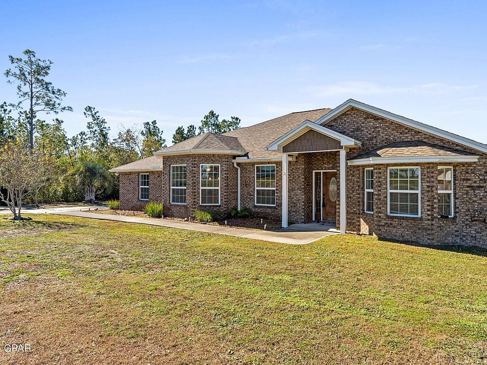 Rare find! This home features exterior brick on all sides as well as a beautiful and spacious split floor plan. Brand new Ryobi riding lawn mower comes with the house! High-end 24x24'' ceramic tile throughout, tray ceilings in master and living room along with tall ceilings throughout make this home feel open and grand. Home comes completely furnished and equipped including stainless steal appliances, high-end washer/dryer and a Ryobi riding lawn mower. Move-in ready or market it as part of your rental portfolio! No HOA means you can use your property as a primary, secondary or investment home! This home features granite counter tops in the spacious bathrooms and kitchen. The garage and parking is very efficient, plenty of space for cars and toys. Driveway can easily fit boat trailers, RVs and more. The back patio features pergola, stone pavers, a built in swing and fire pit. With very few street lights in the area, the stars at night are magnificent. The north end of the property is lined with beautiful fencing and the south and west end of the properties are surrounded by a dense tree line. Directly across the street is Old Majette Park (frisbee disc course, walking trail, stocked fishing pond & more). Only 10 minutes to the nearest grocery store, 15 minutes to the heart of Panama City, 20 minutes to Tyndall Air Force Base and 35 minutes to the white sandy coast line of Panama City Beach.