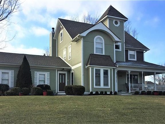 Large corner lot boasts this Victorian beauty with wrap-around porch and 2 service entrances. Tons of sq. ft. Bulls-eye trim and Brazilian cherry floors/staircase. Two living spaces on main level one on lower level. Living/family room features remote fireplace w/Pella windows and slider. The kitchen features gas stove top and 4x6 island, granite, storage, counter space & glass cabinet doors. 3rd floor has private ste & lake view. 3-car garage holds 3 cars, boat & work bench! Radiant heat, NEW AC w/10 yr war.