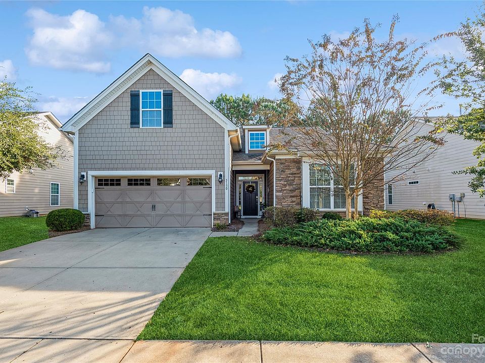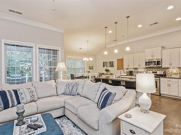 Beautiful ranch home in a fabulous waterfront community. Open concept floorplan features 10ft ceilings, heavy crown & picture molding, wide plank laminate floors in the main living areas & plush carpet in bedrooms. Living area has stacked stone gas fireplace. Awesome kitchen w/large granite island, stainless appliances w/refrigerator & nice pantry. Primary Suite w/trey ceiling, large walk-in closet, huge, tiled shower & granite vanity. Upstairs could be 4th bedroom or nice bonus room w/full bath. Covered patio & nice deck overlook private backyard perfect for outside entertaining. HOA includes lawn maintenance, cable/internet, two pools, clubhouse w/fitness center, tennis courts, pickleball, bocce ball, playground, dog park, lake access, lakeside picnic areas, walking trails, boat ramp, trash collection & recycling plus much more. Less than 10 minutes to the airport, I-485, 85, 15-20 minutes from Center City, Premium Outlets & Historic Belmont just minutes away. A must see!