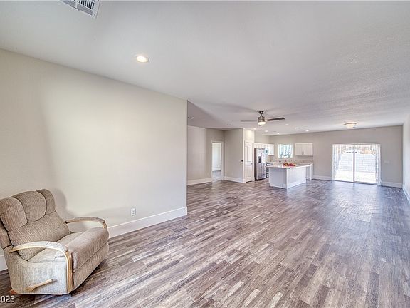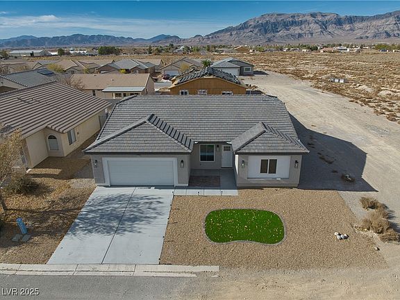 Curb Appeal w/low maintenance front yard. 6' block wall gated back yard for privacy & security. Home was intended to be a Model for the community & therefore has many upgrades. Qualifies for special loan programs & is not in an HOA or flood zone. Beautiful new home w/many custom finishes with manageable sized lots in Richland Estates. Luxury Vinyl flooring throughout home, no carpet. Ceiling Fans throughout, w/flush mount LED lighting. Home has 2 bathrooms, spacious laundry room & open concept living/kitchen/dining area with quartz countertops and breakfast bar. New stainless steel appliances in kitchen (Refrigerator, stove, microwave and dishwasher). Washer-Dryer incl. Split floor plan w/large custom closet & spacious primary bedroom. Oversized 2nd & 3rd bedrooms/bigger than most masters & a 2 car garage. Easy access to Highway 160 for Las Vegas commute. Don't miss this great new home that has never been lived in. Come & see, you won't be disappointed.