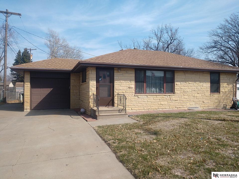 Almost maintenance free exterior with wrapped soffits and fascia, stone/vinyl exterior. Newer roof. Close to schools, and shopping. Single stall garage with extra parking slab on the side. Large open back yard gives possibility to build a larger detached garage with front access! Updates in kitchen, living room, and upstairs bath. Excellent first home, or investment!