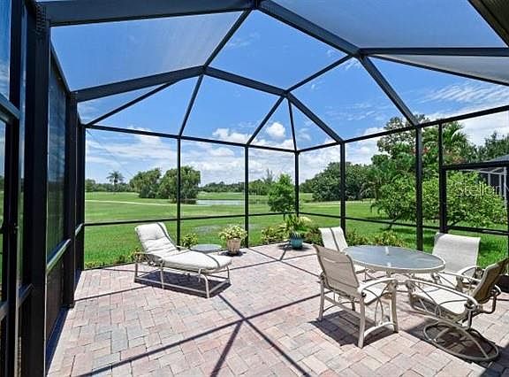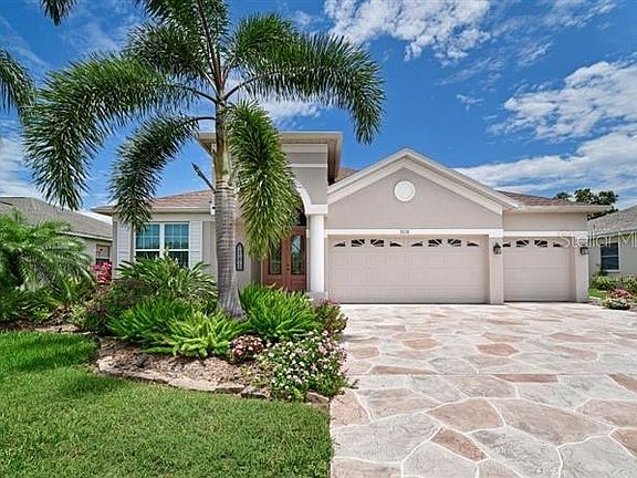 Estates At Glenn Lakes...To duplicate this home with all of the upgrades, on a golf course lot, for this price, is a challenge that is hard to achieve. Premium lot with expansive golf course and pond views, a peaceful and private setting overlooking the 8th Fairway of the Manatee County public golf course. Just sit back and enjoy your views/outdoor space from the NEW Mansard Caged lanai with brick paver flooring that is open to a 13x18 covered lanai with new pavers and auto-roll-down hurricane shutter. Plenty of room for a pool. Home has a beautiful double-door entry with leaded glass. Front door has a roll-down hurricane shutter. Spacious great room with 12 ft. ceilings, office/Den w/double glass doors, 3BR 3BA plus a 3-car garage. Several updates include NEW ROOF in 2017, NEW hurricane windows throughout home. Beautiful high end engineered wood flooring throughout except baths and indoor laundry room. Stunning master bath showcases floor to ceiling tile accent wall, jetted tub w/heater, walk-in shower w/engineered marble (no grout lines), double sink vanity with tile backsplash accent wall. Master bedroom has a tray ceiling and walk-in closet. Kitchen is open to the dining area, new appliances in 2017. Decorative concrete driveway in 2018. Hot water heater 2017. Recessed lighting in several rooms. New exterior house painting. Low HOA fee of $159.00 per month covers weekly lawn care, exterior reclaimed water for irrigation, maintenance of the irrigation, and community management. IMG Academies is just around the corner off 53rd Ave West, you could walk or ride a bike. Central to shopping and a short drive to Gulf beaches. Don't miss showing this beautiful home!