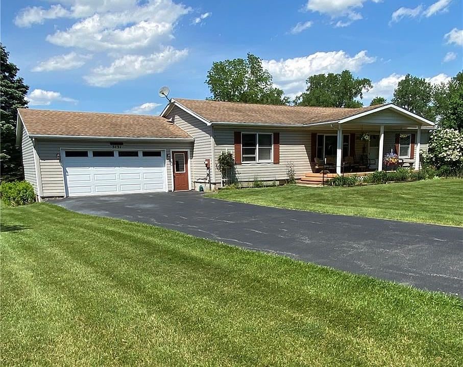H05172 Country 3 bedroom, 2 and a half bath ranch home with finished walkout basement that includes a gas fireplace and second kitchen opening onto a deck overlooking scenic backyard. Newer modern kitchen with solid mahogany countertops. Appliances included. Minutes from the village of Newark and no village taxes. Adjacent lot with 36' x 48' pole barn is available for $45,000 to buyer of 5131 Bailey Road property.