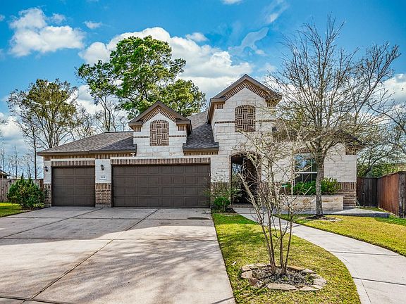 WELCOME HOME. An immaculate, Meritage-built, one-story brick and stone home, that sits in the beautiful community. This fantastic home boasts of a open-spacious floor plan, a large living room with fireplace and a formal dining room with plenty of natural sunlight. Sellers have improved the home by adding a 4th room and a NEW ROOF. The primary wing boasts of a large primary bedroom, an en-suite bath with dual/separate sinks, large shower, and a huge walk-in closet that walks into the utility room. Enjoy the open kitchen, enriched with a large granite countertop, that overlooks the family room. The YARD OF YOUR DREAMS comes with a mini BASKETBALL COURT, A WONDERFUL OUTDOOR PATIO, A STORAGE SHED, AND OUTDOOR FIREPLACE.! The home also comes with SOLAR PANELS FOR MORE ENERGY SAVINGS. Sawmill ranch offers wooded home suites, lakes, trails, fountains and abundant recreation. LOCATION is within minutes hwy 99 and 45, all Woodlands shooping and dining, and VERY CLOSE PROXIMITY TO AREA SCHOOLS.