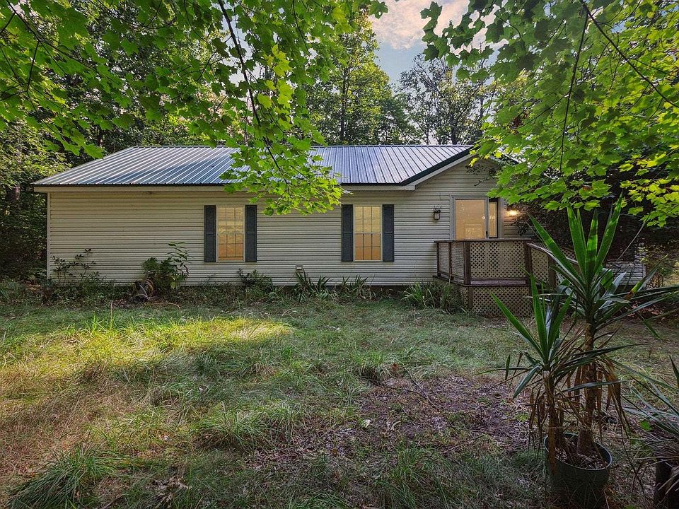 Welcome to your up north dream. With a little TLC, carpet/flooring, and paint this home could be everything you desire. Almost an acre parcel, 3 Bedroom, 2 bathroom home is in a gated community, has a front & rear porch/deck, and has dedicated space in the backyard for a fire pit for entertaining friends & family. Primary bedroom has an ensuite bathroom. The White Birch Lakes Recreational Association amenities include heated indoor pool year-round, clubhouse with fireside room & meeting area, three private lakes, two beaches, tennis & basketball court, 9-hole mini golf course, playground for children, private campground, off-leash dog beach, walking nature trail, and planned community events for people of all ages. Come check out this oasis today!