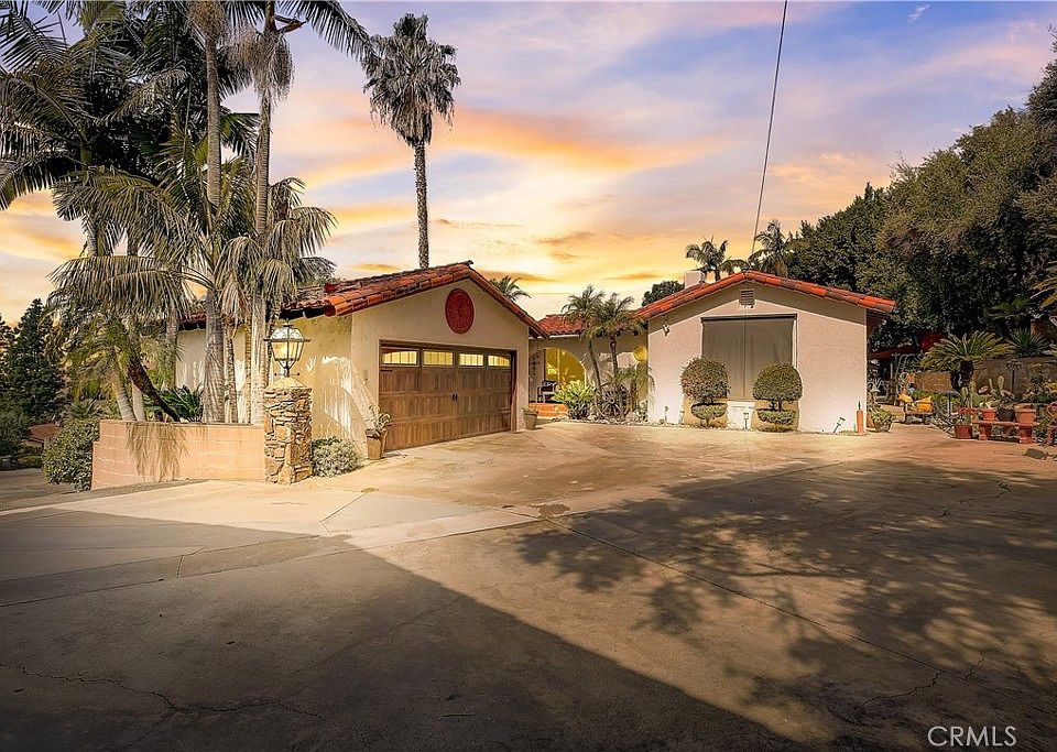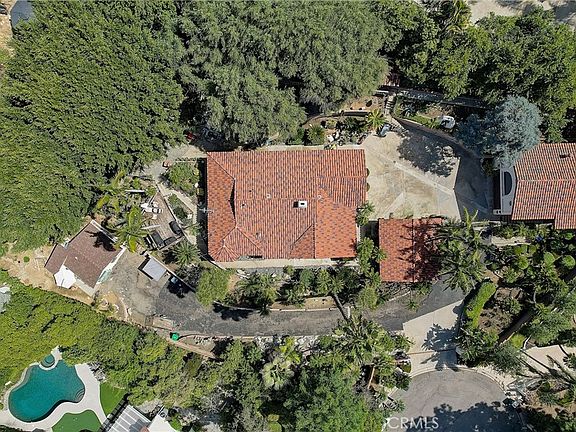LOCATION! LOCATION! LOCATION! Nestled at the top of a private, horse-zoned street, this sprawling 3/4-acre gated compound offers unparalleled privacy and breathtaking views. The main house, along with two guest houses and two detached 2-car garages, has been meticulously updated and exudes pride of ownership. Step inside the freshly updated main house to discover 3 spacious bedrooms, 2 baths, and hardwood flooring throughout. Crown molding, recessed lighting, and custom windows and French doors add to the home's charm. The updated kitchen cabinets bring a modern touch to the space. Outside, the expansive lot boasts three levels, with the flat middle level featuring the main house and one of the guest houses. Multiple patios, wandering paths, and outdoor living areas create the perfect setting for summer gatherings, complemented by a dramatic waterfall feature.