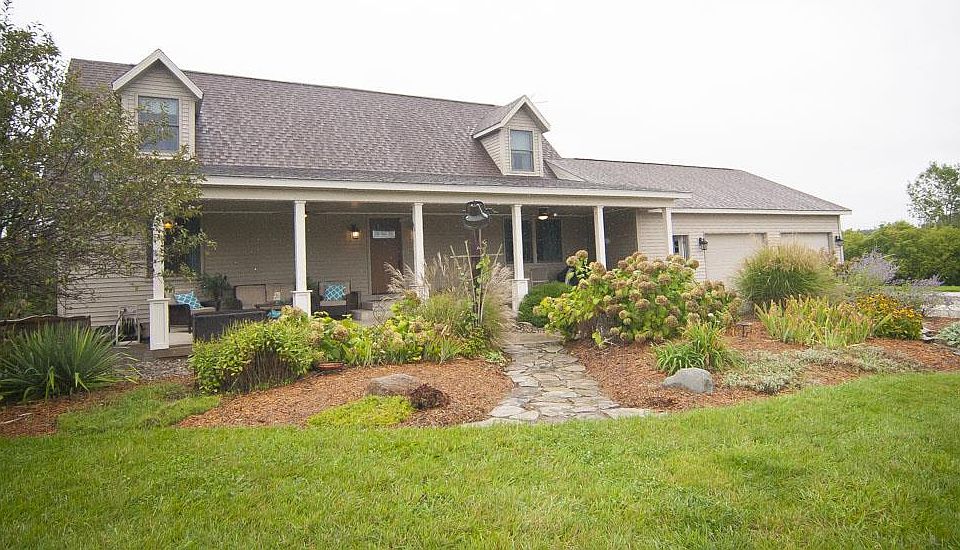 Beautifully remodeled home that sits on 7.487 acres atop gorgeous rolling property! Partially wooded, landscaped, walking trails and all the privacy and beauty that you are looking for in a home. As you walk up to the home you will notice the charm of the landscaped stone path, leading you to an oversized covered front porch to enjoy time outdoors. Once you enter the home you will see the open concept floor plan. The living room has gorgeous bamboo flooring that leads you into the kitchen where you will fall in love with the new tile flooring, stainless steel appliances to stay, mosaic tile backsplash and an abundance of cabinet space. There is also a large pantry creating even more storage space in this functional kitchen. The dining room boasts a breathtaking view of the wooded back yard and is open to the kitchen. Master bedroom is just off of the dining room along with the master bath which has been updated with new flooring and vanity. Main level laundry room with a 1/2 bath attached. There is also a nice sized mud room off the of the garage making a great space for coats, shoes, and book bags. Make your way up the staircase and you will come upon a nice large loft area that can be used as a play area for the kids or a place to cozy up and read a good book. Both bedrooms upstairs are good sized with lots of natural light. You will also find another full bathroom on the second floor. This home has an abundance of new updates and extras such as all new flooring, vanities in the bathrooms, radon system, humidifier, Anderson windows, and all new exterior doors. This home sits on a partial basement that is unfinished but has a ton of potential to make it into any kind of area to fit your needs!!! 2 car attached garage. Step outside the home where you will find a shed with concrete flooring. Fenced in garden area, and rolling land creating a gorgeous backdrop. There is so much to offer with this fantastic property you won't want to miss out!