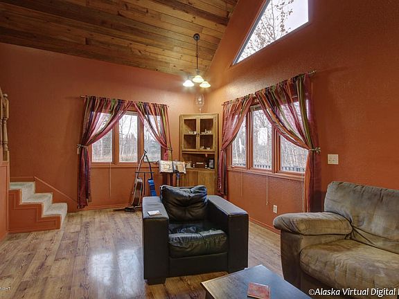 Very nice, beautifully updated 3 story home in great location. Close to Wasilla and Seward Meridian for commuting. Great master bedroom / bathroom loft, nice sun room on main level looks over back yard and greenhouse. Two bedrooms, family room and bath/laundry in daylight basement with access to outside. Detached 2 car garage pad is ready to build your dream shop.