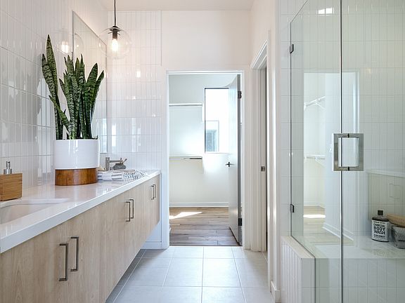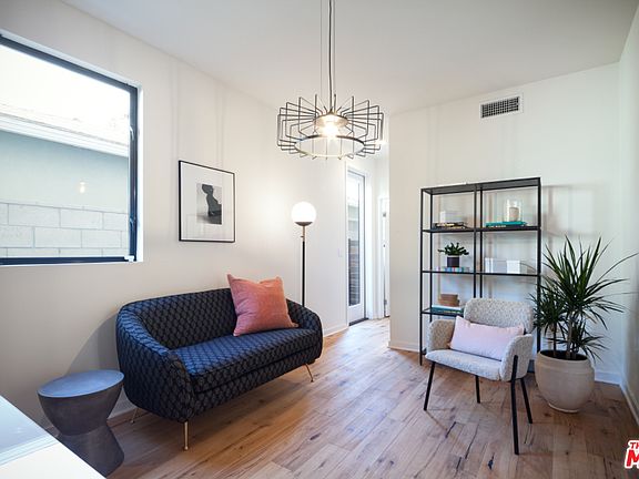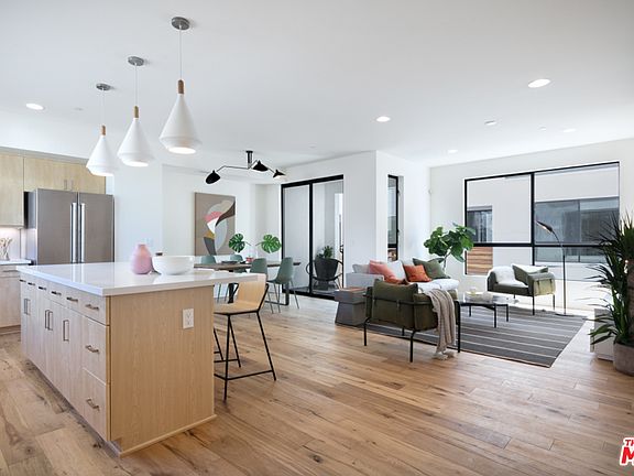 New construction by award-winning Planet Home Living. Breezy modern design on a residential side-street, just a few blocks from shopping, dining and nightlife in the NoHo Arts District. The structurally independent home has wood flooring and oversized windows gathering abundant daylight. The open kitchen features a center island, full-height tile backsplash and complete suite of stainless appliances. Three bedrooms include one on the ground level for guests or workspace; a two-car garage provides direct access to the home. The private balcony is perfect for morning coffee or evening relaxation. Earth-friendly elements include dual-pane windows, central a/c, and innovative design for maximum living space in a minimal footprint. This staged "model" home is part of Palmea, an intimate community of just eight homes with seamless access to theaters, restaurants, markets and more. Burbank, Studio City and Universal are within easy reach. Furniture pictured is available for purchase.