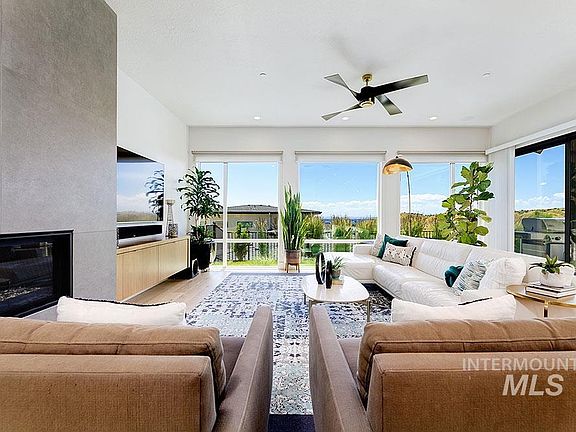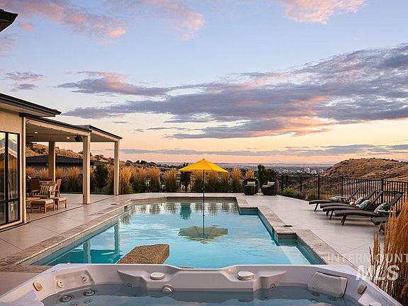 A captivating resort-style setting with in-ground pool and city views! Set just above the North End, the residence takes in the remarkable views, with a generous great room concept lied with two sets of wall-to-wall sliding doors leading to an expansive wrap-around covered patio with a picture-perfect setting taking in the downtown skyline and lights dazzling in the evening glow. The softness of the abundantly light interior is amplified by warm natural-stain wood flooring and punctuated by stylish designer fixtures. A sleek gourmet kitchen provides a refined space for culinary craft, with Bosch® and Thermador® appliances, flat-panel soft-close cabinets, and stunning marbled porcelain countertops (including a notable waterfall edge on the island). An in-home retreat, the main level primary wing includes a bedroom with access to the patio, a flex room/office, a fabulous walk-in closet, and a luxurious bathroom with a European-style shower and direct access to the laundry room.