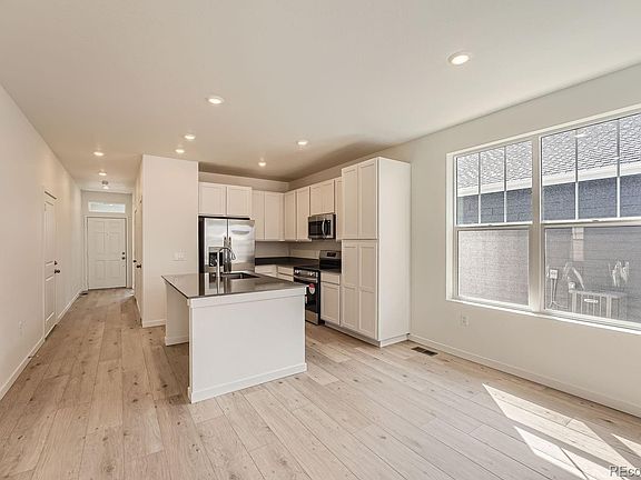 Available NOW! 55+ Gated Community at The Reserve in Green Valley Ranch! Beautiful Clubhouse and amenities -Beautiful Kingston Ranch plan by Lennar homes features 3 beds, 2 baths, study/office, great room, kitchen, unfinished basement 2 car garage! Gorgeous upgrades and finishes throughout including a slab quartz counters & island, luxury vinyl plank throughout the main floor, stainless steel appliances, carpeting and more. Lennar provides the latest in energy efficiency and state of the art technology with several fabulous floorplans to choose from. Energy efficiency, and technology/connectivity seamlessly blended with luxury to make your new house a home. Green Valley Ranch offers single family homes for every lifestyle. Close to dining, shopping, entertainment and other amenities. Don't miss your opportunity. Photos are model only and subject to change. The active adult community has private roads that are privately maintained.