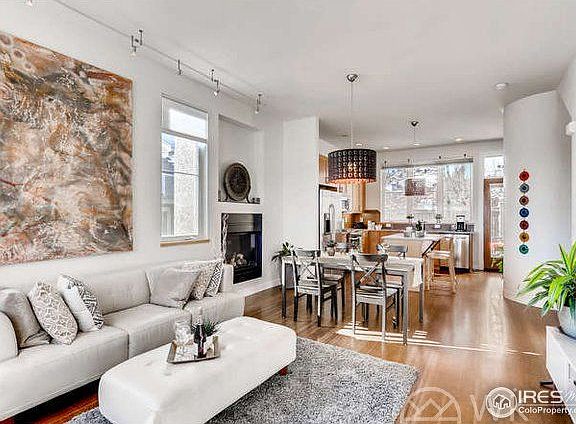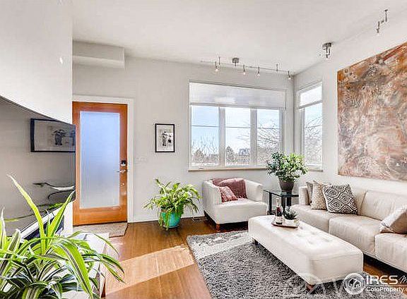 Rare opportunity ONLY 1 other detached home for sale W of Broadway under 870K Lock and leave, low maintenance. Trees surround back & front patio+corner lot+no homes across street. Move in ready, Bright, open, 10ft ceilings, big windows. Mtn views from kitchen, bedroom & loft. Near 3 Open space trails, EZ bike ride to Pearl St, 3 parks, new comm. center & walk to restaurants. Turn key living/entry level home. Basement ready for sweat equity vision. Social neighborhood, community feel. Low HOA.