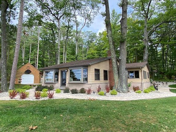Well maintained & spacious ranch home on 140’ prime Hubbard Lake frontage. Warm and inviting is the feeling you get when you walk in the door.This 3 bedroom, 2 bath home offers a nice open floor plan with knotty pine interior. The entire family will love & appreciate the updated 12’ x 12 ½’ open kitchen surrounded with, hickory cabinets, granite countertops, stainless steel appliances,and slate flooring.An abundance of Anderson windows and door walls welcome plenty of natural light throughout the entire home, allowing panoramic views of the lake from nearly every room. 8.5’ x 12’ Utility/Laundry room. New septic 2005. Both home and 2.5 car garage have vinyl cedar shake siding. Additional 14’ x 15’ shed/garage. Trex Decking at lakeside and the 7’ hot tub will assure this spacious area will be the perfect entertaining area. Plexi- glass siding allows the best views from inside and outside the home. It truly doesn’t get much better than this. The views from this home are incredible; add in a perfect Hubbard Lake sunset and you are reminded how good life can be. This home is immaculate, and is truly a must see; true pride of ownership through-out. This could be your dream, come true, lake house. Lake living at its best!