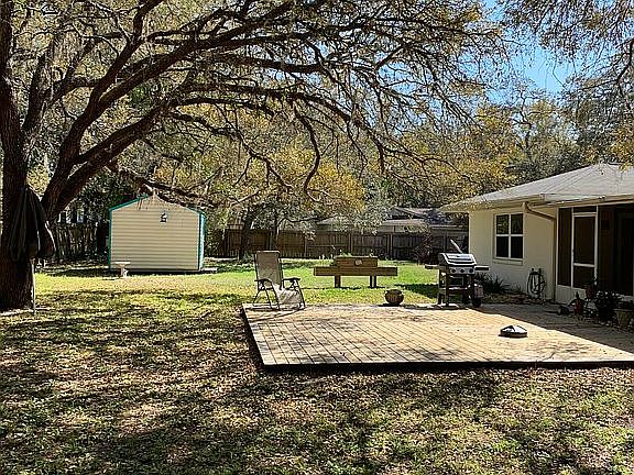 Well maintained 3 bedroom 2 bath home in desirable neighborhood. Open Floor plan. Updated kitchen with SS appliances. Skylight. Large master bedroom with large walk in closet. Garage with workshop area. Walk out of living room through french doors onto a 14 x 18 screened in lanai. From there walk out the back door onto a 20 x 20 ground level deck, equipped with 220 electric for your hot tub. Huge fenced backyard with 10x12 storage building. Sprinkler system. Plenty of room for a pool. Home is in move in condition. Near Hwy 19, Suncoast Parkway and all shopping.