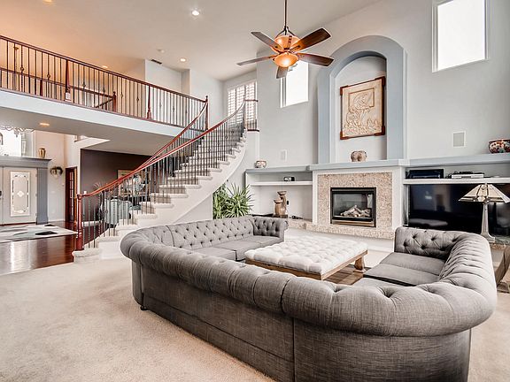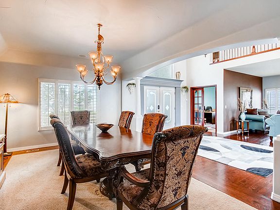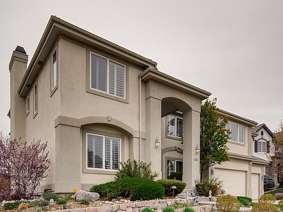 Beautiful 5 bed/6 bath home in the coveted Piney Creek neighborhood. The grand entrance welcomes you into a 2-story great-room living area accented by a gas fireplace, built-in shelving and a curved staircase with landing overlook. The kitchen includes a double oven, slab granite counters, granite back-splash, 42" antique white cabinets, a built-in desk, and walk-in pantry. Formal dining area includes wood with inset carpet and columns flanking the opening. The main floor study with built-in bookshelves and elegant woodwork. The spacious master suite offers a double-sided fireplace, large sitting area with a wet bar and remodeled 5-piece bath. The finished entertainer's dream basement is highlighted by a bar, theater room and fitness room with sauna and steam shower. Experience mountain view sunsets in the west facing backyard with a large deck, fire pit, hot tub, and sport court basketball area.