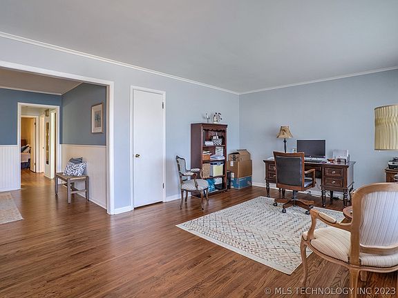 Cozy all brick, 3 living areas, 3 bed, 1 1/2 bath home with 2 car garage. Totally new kitchen with white cabinets, new granite counter tops, ceramic backsplash, all new appliances, plus refrigerator, washer and dryer stay. New or refinished hardwood floors. Fireplace in family room. New Furnace in Dec 2021. Roof 5 years new. All this close to Brookside, Riverside Parks and the Gathering Place.