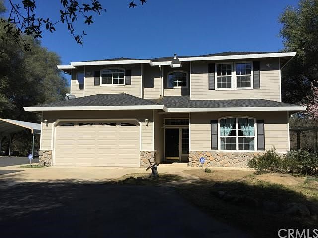 Location,location,location....Beautiful 4 bedroom 3 bath home with over 2700 square feet. Perfect for the family who loves to entertain. Boasts a living room with 20 foot high ceilings with amazing windows that give you a beautiful view of the surrounding oak trees,all this opens to a huge kitchen dining combo equip with a large self cleaning double oven, gas cook top,huge island,lots of oak cabinets and 24 kitchen drawers. It has a separate game room or den. Each of the 4 bedrooms has its own character with ample space for every person in the family to create their own private getaway.Home has lots of closets and an inside laundry room,central vac,split system central heat and air along with 2 car attached garage with new door. This family resort has a large concrete patio, and surrounding landscape, stamped concrete path that leads down to your amazing hot tub and 20 by 40 tahoe blue pebble tec pool. There is a cute 12 by 20 shed with front & back porches that could make a great hobby room or man cave. All this located on 7 park like acres with great rock out croppings. Paved driveway,paved road access located 10 minutes to town, 45 minutes to Merced.Don't miss out on this wonderful home in Mariposa.