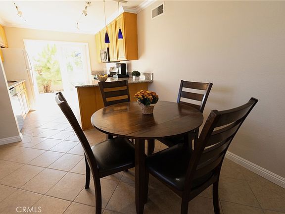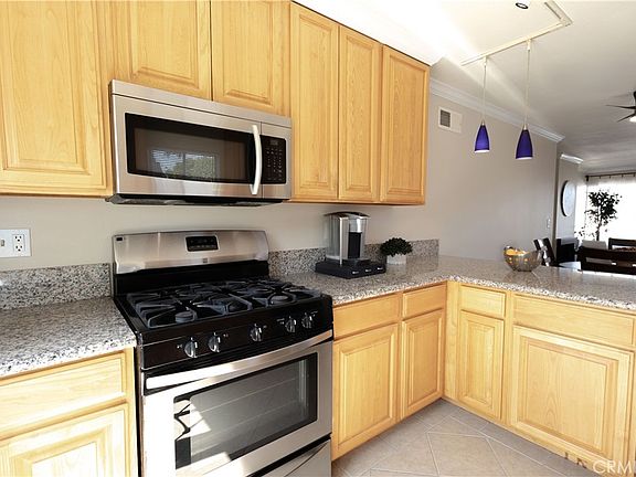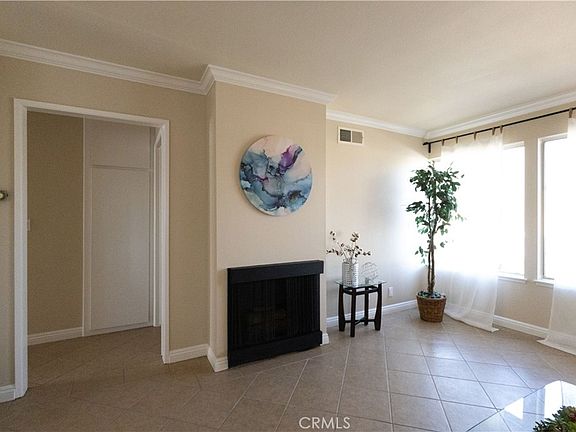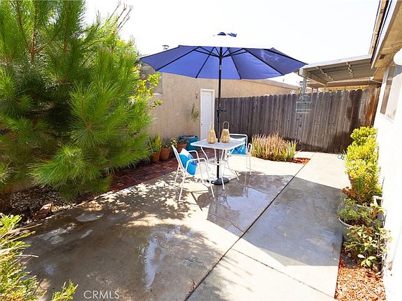 RARE SINGLE STORY END UNIT! This is a spacious 2-bedroom Single Family PUD with one bath and extra sink in main bedroom. Located in the heart of La Palma Village. The convenience of a large side-by-side 2-car garage connects to the home through a generous large private patio, providing both security and convenience. This well-maintained home has a fireplace in living room. Fresh new interior paint in kitchen and living room and all doors, baseboards and crown molding freshly painted sparkling white. Upgraded kitchen with brand new pull-down faucet. House includes newer portable AC unit and new central heating. Lovely lighting and new kitchen fan. Washer/dryer in garage. Home is located in a vibrant community of 202 units with swimming pools, kids pool, club house, green belts, and ample street parking. Very convenient location, sought after schools and new modern sports park soon to be completed nearby. Low HOA fees! Do not miss this lovely home!