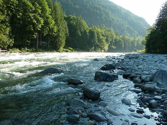 The Wild Lily - featured in Seattle Magazine. Magic amidst towering Douglas Fir and Cedar. Riverfront overlooks spectacular cliffs, invites you to walk secluded beaches and watch Eagles soar. House has softwood floors, pine t&g walls, riverrock fireplace, rainforest marble counter, cedar bath with clawfoot, spacious loft, large windows, breathtaking views. Also 2 small cabins, hot tub, sauna, bathhouse, view hut, tool & wood sheds, picnic tables, fire ring. Primary or 2nd home, licensed B&B.