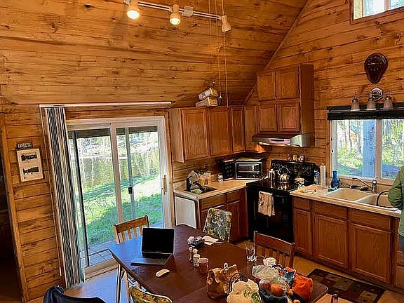 Modern renovation of cabin overlooking Glacier Spring lake in Mesa Lakes recreation area just 45 miles from GJT just off Hwy 65. 1-2 BR cabin sleeps 7 plus kids in loft. Great family space equipped with internet to work from the woods. Private water supply tank for winter to supplement seasonal community system. Excellent fishing 30 yds down the bank from cabin back door.