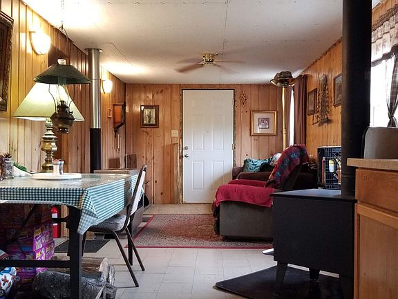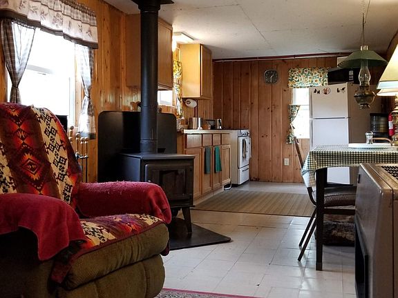 In need of a little house? Look no further! This cabin built in 1950 sitting on 2 acres has received lots of attention and a 2 stall garage has been added to the property. This home is equipped with an auxiliary PV (photovoltaic) system as well as conventional heating and electric. Owner lived a full 2 years here 'off grid'. 2 bedrooms (one being utilized as an office) 1 bath, open kitchen and living room with a free standing propane fireplace as well as a wood burning stove. Well kept and energy efficient.