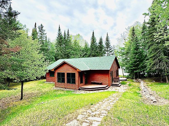 Log Sided home on Turtle Lake! This property epitomizes the essence of "Up North" living. Situated on 1.71 acres, the home boasts an open concept design with genuine hardwood floors, vaulted ceilings, casual dining area, tongue and groove accents, Hickory Cabinets, a newer furnace, and a sunroom ideal for accommodating additional guests. Enjoy morning coffee in the three-season porch, taking in the breathtaking lake views, or in the spacious living room with the wall to wall picture windows. The property features a 2 Stall detached garage, a split rock pathway to the home, mature cedars, 191' of excellent, sandy shoreline, and a large lake side deck. This home is move-in ready complete with furnishings. Experience the ultimate lake lifestyle with this charming "Up North" retreat