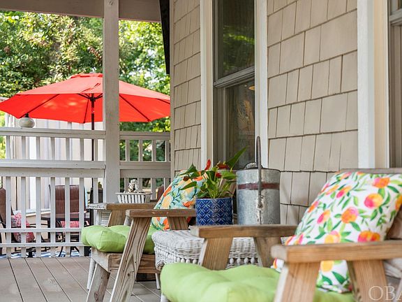 Nestled among the trees, this three-bedroom, two-bathroom Cape Cod style home with a large front porch offers a tranquil woodsy vibe, perfect for a peaceful lifestyle. Tucked back for privacy, the home sits on the edge of a serene pond where you can enjoy kayaking or stand-up paddle boarding. It is located in the established neighborhood of Kitty Hawk Estates. Inside, you'll find a cozy and inviting atmosphere with all the comforts you want in your home. The home features a spacious living area, a fully-equipped kitchen, and dining area. The primary bedroom is on the first level with access to a side screened in porch. Upstairs are two additional bedrooms and a shared bath. Have you ever experienced a quiet HVAC? This home features cutting-edge, practically silent units. Step outside to your backyard oasis, complete with a beautiful heated pool, hot tub with brand new cover, and an expansive deck. Whether you're soaking up the sun, taking a refreshing dip in the pool, or unwinding in the hot tub, this outdoor space is designed for relaxation and enjoyment. The location offers a perfect balance of seclusion and accessibility, with nearby paths for hiking and biking, and local attractions, stores and restaurants are just a short drive away. It is only minutes from the Kitty Hawk Pier and the Atlantic ocean. Come experience the charm and serenity of this delightful home. Schedule your showing today.