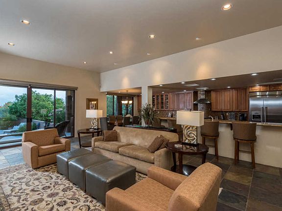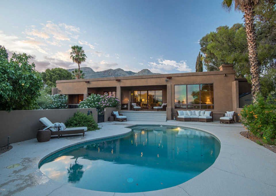 Stunning completely remodeled estate designed by Lori Carroll overlooking the 16 fairway in the exclusive gated Catalina Foothills community of Skyline Country Club. This spacious 3,633 sqft property underwent an over $500,000 remodel in 2006 and features an open floor plan with high ceilings, luxurious master suite with enormous walk-in closet, gas fireplace, jetted tub, walk-in shower / steam room and dual sinks, state of the art kitchen with granite counters & stainless steel appliances including 2 wine fridges, split bedroom layout, slate flooring, pool heater & pump recently replaced, private 1.17 acre lot with natural desert landscaping and citrus trees, fabulous city, golf and Catalina Mountain views, swimming pool, expansive covered patio and access to Skyline Country Club