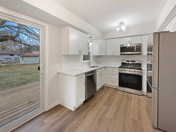 Seller may consider buyer concessions if made in an offer. Welcome to this beautifully renovated home featuring a new roof and updated HVAC system! This property boasts a fresh, neutral color paint scheme that beautifully complements the new flooring throughout. The remodeled kitchen is a sight to behold with stone counter tops, all stainless steel appliances and an accent backsplash that adds a touch of elegance. Step outside onto the deck to enjoy the privacy of a fenced-in backyard. Both the interior and exterior of the home feature fresh paint, and all appliances are brand new. This property is a perfect blend of style and comfort. This home has been virtually staged to illustrate its potential.