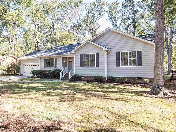 Perfectly inviting Ranch with 3 beds / 2 baths that's close to the Eno! Huge half-acre lot in established neighborhood with mature trees, city water/sewer and no HOA. A vaulted living-room ceiling and gas fireplace welcome you inside. Master suite featuring a large walk-in closet and jacuzzi bathtub. Hardwood floors in foyer and dining room.. Stylish tile back splash and stainless appliances. Freshly painted deck overlooks landscaped yard. Two car garage with built-in shelving. New roof (2018)!