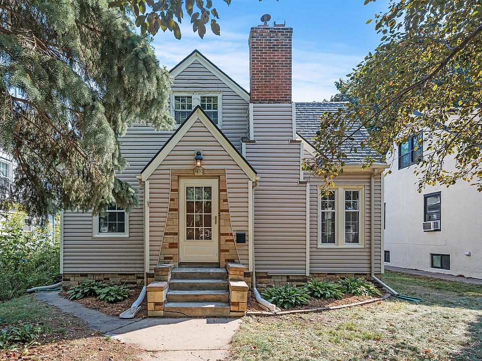 Adorable Nokomis neighborhood Tudor! This one and a half story home features three bedrooms, one full bath and a one car garage. As you enter this home you are greeted with beautiful hardwood floors throughout. Natural woodwork and gorgeous wood burning fireplace with stone surround. Formal dining room leads to the fully updated kitchen with stainless appliances, granite countertops and built-in breakfast nook. Upper level boasts original hardwood floors and plenty of space for bedroom, office and flex space. Lower level features high ceilings and has an office or flex area finished along with ample additional space waiting for your finishing touches. Private backyard with large patio and plenty of room for entertaining friends or family. Located steps away from shopping, restaurants, library, walking and biking trails. Six blocks to Lake Nokomis or the Minnehaha Falls Park. Do not miss the opportunity to call this gem your next home.