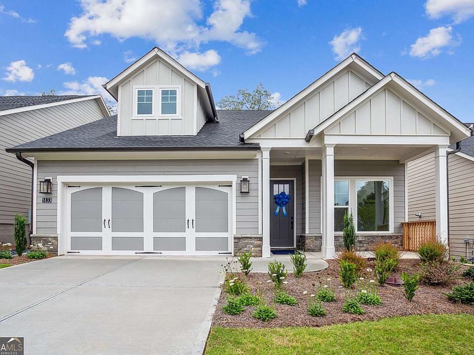 Beautiful Cartwright II ranch home by David Weekley Homes - MOVE IN READY! The "SERENITY SUITE" is a spacious one level award winning home which features a SUPER OWNER's Retreat and an additional guest bedroom with full bath. Prepare your breakfast around the kitchen island with quartz countertops and serve your favorite entre while talking to your friends in the family room. The open floor plan is perfect for gatherings and birthday parties. Prepare your formal dinner in the elegant gourmet kitchen and sit in the dining area to celebrate your special days! Move freely onto the rear covered patio and large backyard for entertainment and relaxation. Experience your private alone time in the study and then retire in the king-sized SUPER Owners Retreat with gigantic walk-in closet on the main level. Loads of windows allow natural light and this home is perfect for the two of you to live comfortably. New Model now open! ALL LAWN CARE INCLUDED in HOA. The 2-car garage is practical and convenient for vehicles, storage and so much more! Cherokee County offers seniors a property tax break, another great reason to be in Cherokee! This new active adult community in Great Sky offers loads of amenities! 3 pools, 4 pickleball and tennis courts, Hickory Log Creek Reservoir / lake surrounding the community, walking trails, basketball, community gardens, community clubhouse and 2 lifestyle directors! Decorated Model open daily and tours by appointment, call today! The community is 55+ and age restricted. We are also open for presales Please call for information- Tours by appointment.
