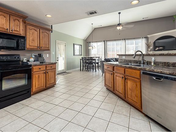Well maintained ~ one owner home just around the corner from neighborhood park! 3 bedrooms + office down* Extra deep garage with A/C, sink, & extra storage area that is fabulous for large vehicles* spacious hearth room w/ corner fireplace overlooking the backyard* Split bedroom floor plan gives you all of the privacy you desire in the primary suite* Living Room will accommodate any size furniture so go ahead & buy that comfy sectional sofa for game day* covered patio & fenced yard*Nice & clean