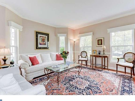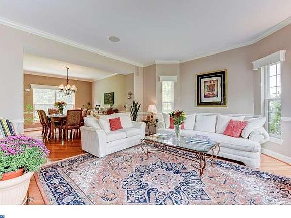 Amazing upgrades in this elegant colonial home in a sophisticated community with the bonus of a cul de sac street. Located between 611 and 413, this home is marvelous for the commuter. Entering the foyer the first of many upgrades is a wonderful custom tile area outlined with beautiful Italian tile set into the polished hardwood floor. A wonderful choice for Bucks County's snowy winters, the tile acts as a beautiful protector of the gorgeous hardwoods. Set diagonally, these floors visually open the rooms and add a gleaming counterpoint to the architecture. Custom cornices accentuate the windows - especially the sidelight windows added to the living room as a unique upgrade. This is a wonderful way of inviting sunshine and framing the natural sofa placement. The living room is open to the dining room with a beautiful view of the trees. The kitchen features granite counter tops, center island, cook top, wall oven and double sink. It is open to the breakfast room with sliders to the backyard. The family room is soaring and dramatic with a custom wall of windows stretching from the floor to the two story vaulted ceiling. Imagine relaxing in front of the fireplace with that glorious ever changing view. A pretty hallway leads to the laundry room and inside access to the two car garage. A powder room completes the first floor. On the second floor three generously sized bedrooms share a well appointed bathroom with dual sinks. Behind double doors is the master bedroom with tray ceiling, spacious sitting room with vaulted ceiling and beautiful ensuite bath. Italian tile, soaking tub, dual sinks, glass enclosed shower and separate commode room are the features here. Full walk out basement, new water heater, Blue Ribbon Central Bucks School and no Association dues ? what a wonderful choice for your new home.