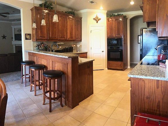 3 bedrooms with optional 4th bedroom, game room or office Granite countertops in kitchen Walk in pantry Open floor plan with electric fireplace Built in sound system in living area Large laundry room with sink, closet, cabinets & fold down ironing board Bull nose corners & orange peel texture New carpet installed Fall 2019 Oversized 2 car garage (674 sq ft) 9 ft ceilings with vaulted ceilings in living area and Master bedroom Crown molding in kitchen, dining, living and Master bedroom Beautiful pond on 1/4 acre 5 acres surrounded by pipe fencing and electric gate 30X40 Shop Small fenced area w/tack room & two stalls Covered porches Bells School District
