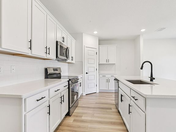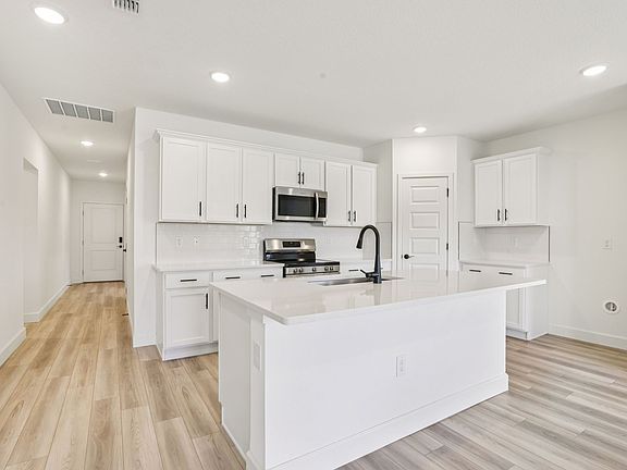 Discover the perfect blend of comfort, thoughtful design, and modern convenience in this beautifully upgraded 4-bedroom, 2-bathroom home. Designed with your lifestyle in mind, this home offers everything you need for easy, low-maintenance living - including a spacious covered patio, perfect for morning coffee or evening gatherings.Charming stone accents welcome you home, leading into an inviting interior filled with stylish touches. The designer kitchen features upgraded stainless steel appliances - including a side-by-side refrigerator - quartz countertops, and elegant cabinetry with crown molding and hardware. Luxury vinyl flooring runs throughout the main living areas, offering beauty and durability, while the plush carpeting in the bedrooms with 8lb padding provides exceptional comfort underfoot.Enjoy energy-efficient LED lighting, custom designer lighting in the dining room, and blinds on all operable windows for privacy and ease. The primary suite is a true retreat, featuring dual sinks, a large walk-in closet, and serene finishes.Spend more time doing what you love with a home built for relaxed, elegant living - inside and out