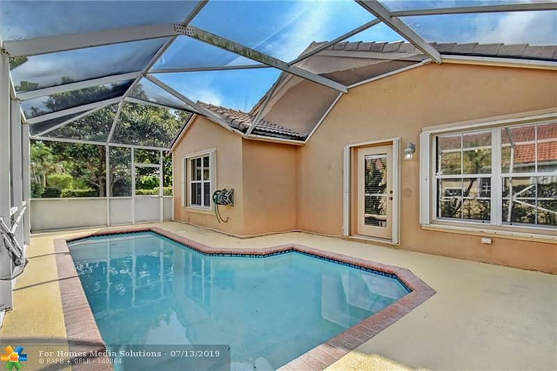 REDUCED!! Located on a corner lot, this 4/2 pool home features: foyer entry, pantry, tile floors in living areas, laminate in master bedroom, vaulted ceilings, accordion hurricane shutters, fenced yard and screened-in pool/patio! 4th room is a den, can easily be converted to bedroom. Low HOA fee includes common area and gate. Close to top rated schools, shopping, dining and Sawgrass Expressway. Master bedroom light, dining room light and back bedroom light do not convey.