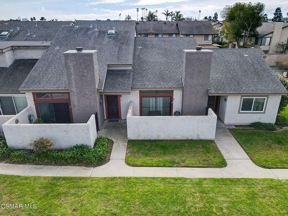 High vaulted ceilings, Beautiful new laminate vinyl flooring, new paint, New Stove, dual pane slider going to private patio, brick gas fireplace, 2 car attached garage, spacious bedrooms upstairs with high ceilings! Nearby shopping, schools and great restaurants and Ventura County beaches. Front yard maintenance, greenbelts and walkways... MUST SEE!