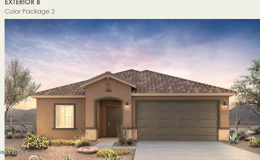 Exceptional use of space in this single-story Marigold plan with 3 bedrooms and 2 baths. Home is under construction with an estimated October 2025 close. Located on an oversized corner lot with a double gate and no rear neighbors. Includes stainless steel appliances, fridge, washer/dryer, front yard landscaping, tile in key areas, granite kitchen counters, large covered patio, and energy-efficient features.