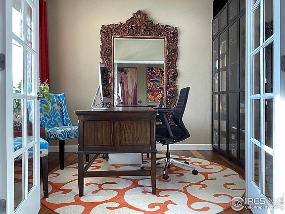 Gorgeous 2 story home in the coveted Observatory Village community with mountain views of Longs Peak and the Rockies! Hardwood floors welcome you as soon as you step foot into the entry. Adjacent home office with French doors has a wall of glass door cabinets. The hand-scraped, engineered walnut floors continue into the kitchen & great rm with fireplace and built-in surround sound. The central kitchen island has granite countertops, gas range with double oven and bar stool seating. The eat-in dining area has sliding glass doors, creating a seamless indoor-outdoor flow to a composite decking sitting area. The main level guest bedroom includes full bath, granite countertops and walk-in shower. Upstairs has three bedrooms and 2 full baths including a superb master suite complete with polished stone countertops and under-mount double sinks. Upstairs features a loft that is filled with natural light providing a serene workspace or lounge area. Included upstairs is a whole house fan to cool on shoulder seasons. The mostly above-ground finished basement is a versatile space, featuring another lounge area/family room with dry bar, mini-fridge, built-in surround sound - ideal for hosting gatherings or enjoying a quiet evening at home. The daylight basement also features a large, hardwood floored art studio/workout room/bedroom with double French doors and huge walk-in closet. Living in Observatory Village means you'll have access to several parks, fenced dog park, walking distance to all three schools, a fantastic community pool, and even a neighborhood observatory. This is your place to call home!